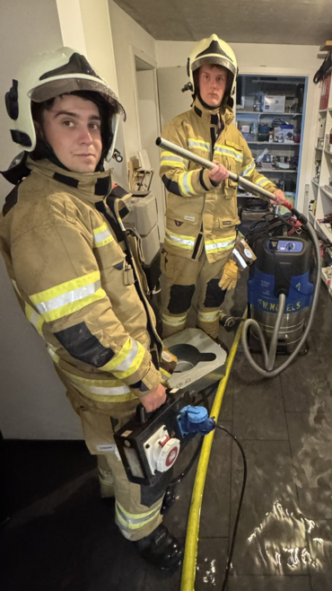 Das stehende Wasser wurde mit einer Pumpe ins Freie befördert, anschließend entfernten wir mit einem Nasssauger das verbleibende Wasser von den Böden.